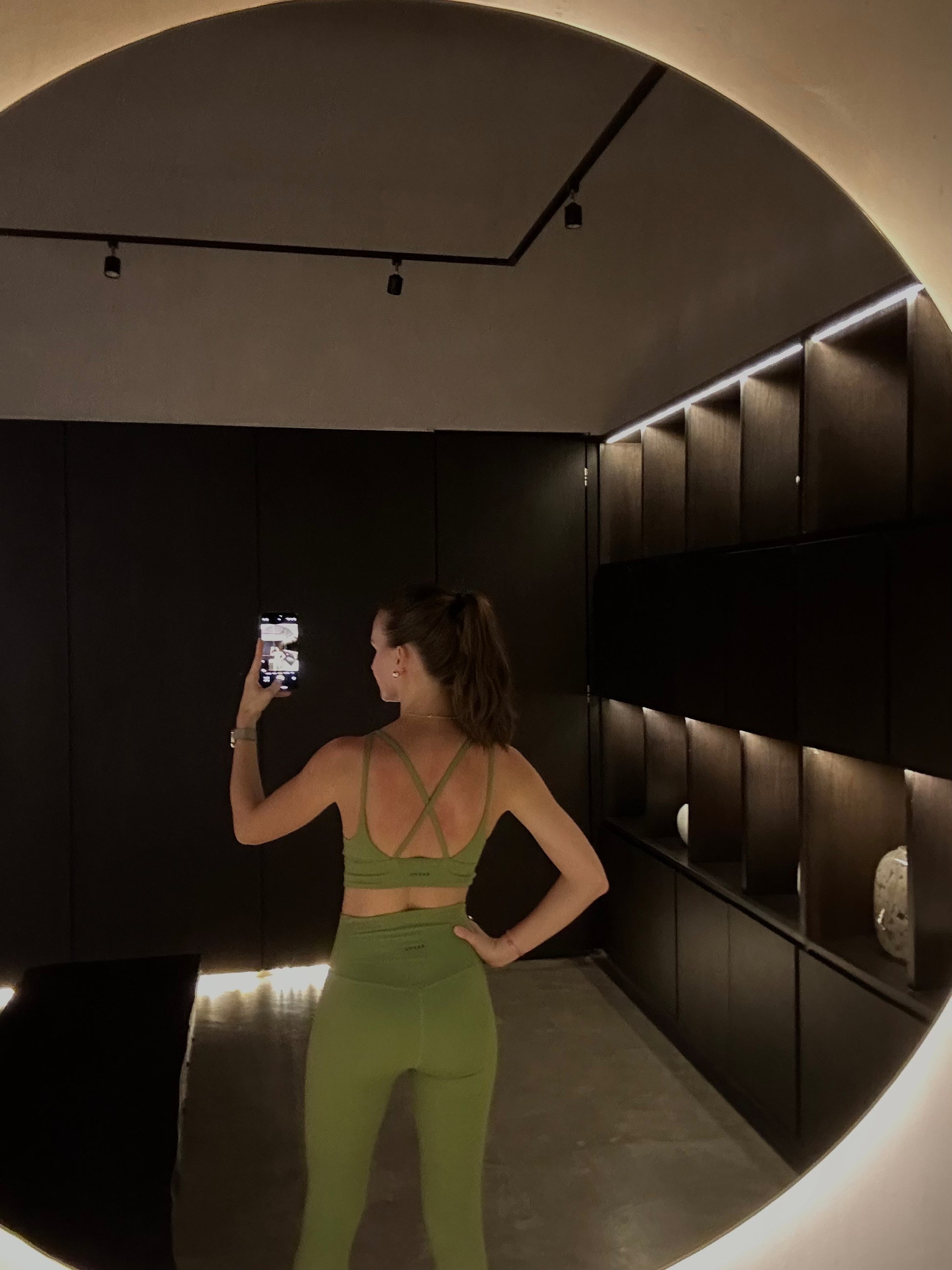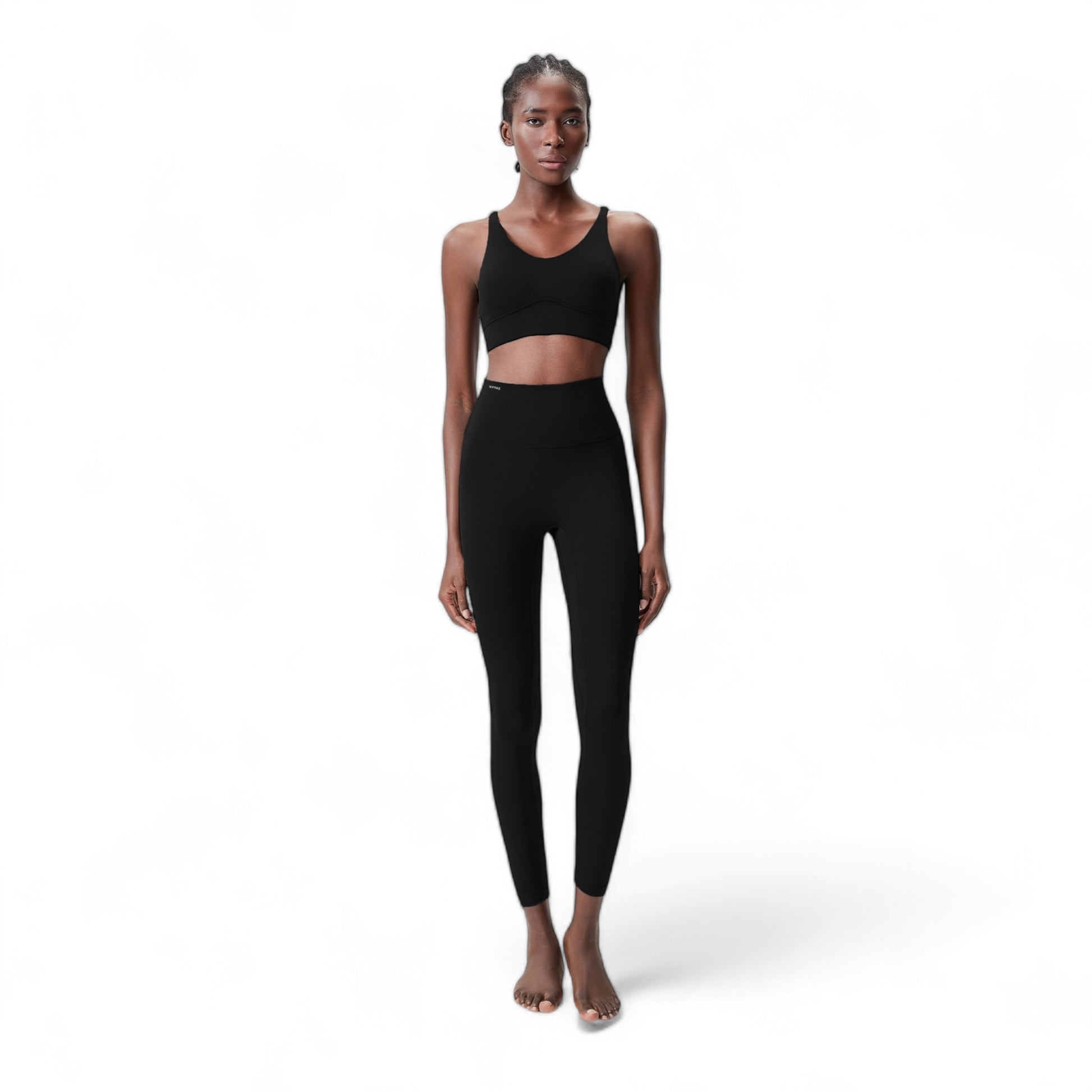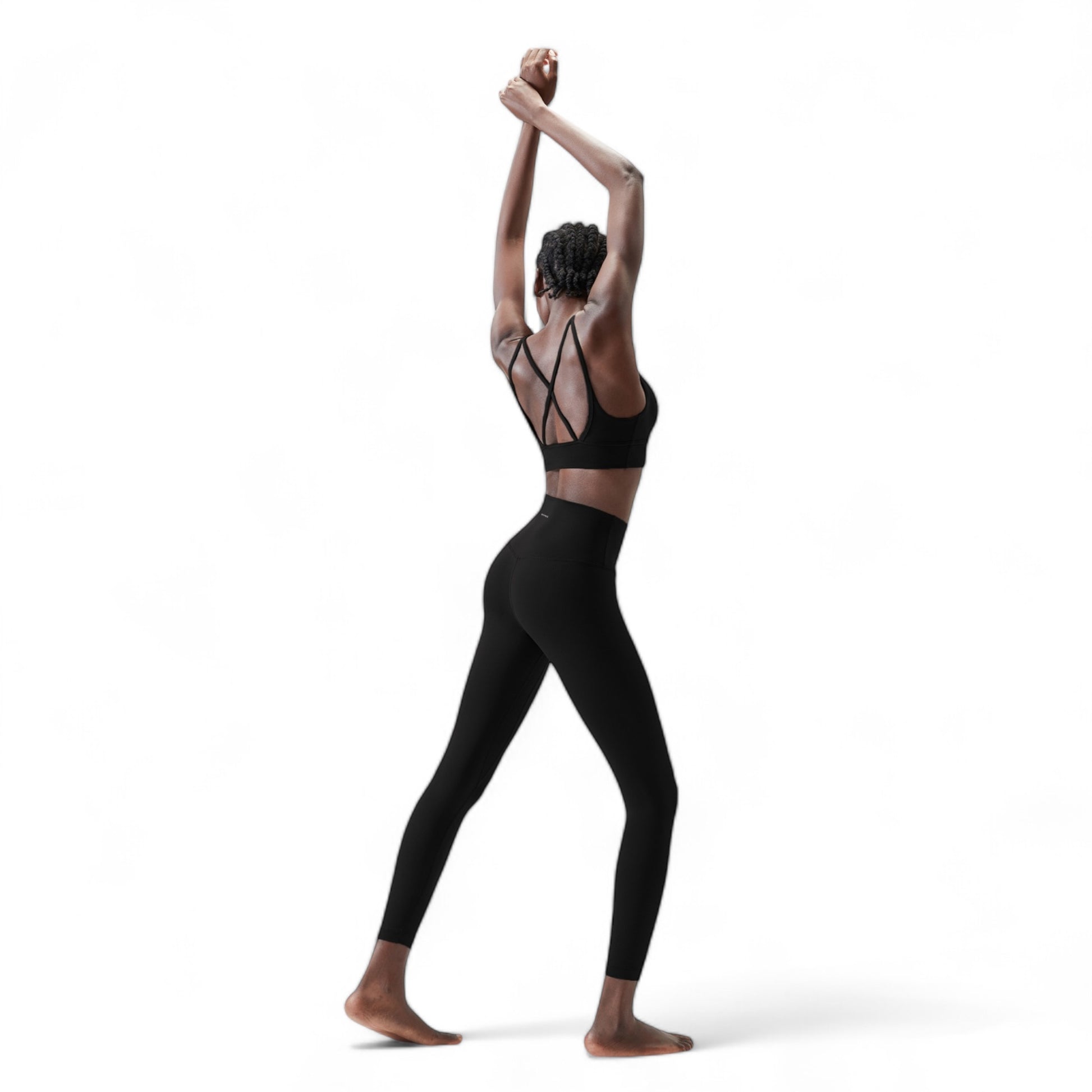 Cross-back sports bra with removable cups, designed for easy wear and removal.